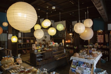 もともと乾物屋だった築80年を超える商家を改装したお店。 店内には、色彩も豊富な色々な形の美濃和紙照明が並び(オーダーも大歓迎)、多彩な作家によるハンドメイド雑貨や小物、大人気の自家製酵母のパンやお菓子などが購入できます。また、作家さんたちよるワークショップも開催されています。